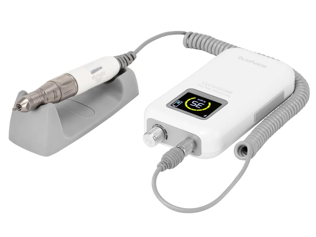 Frézka pracuje ticho, čím eliminuje dráždivý hluk a zabezpečuje pohodlie pre lekára aj klientov. Zabudovaná batéria s kapacitou 2850 mAh umožňuje až 8 hodín prevádzky na jedno nabitie. Zariadenie má navyše automatický režim úspory energie, ktorý zabraňuje vybíjaniu batérie. Okrem toho bolo zariadenie navrhnuté s ohľadom na ergonómiu - vďaka pohodlnému usporiadaniu tlačidiel a intuitívnemu ovládaniu prebieha každé ošetrenie hladko.