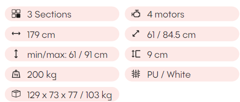 - 4 nezávislé motory: Presnosť, rýchlosť a ergonomické použitie, ovládajú polohu vašej postele bez námahy a umiestňujú pacienta presne podľa typu liečby.