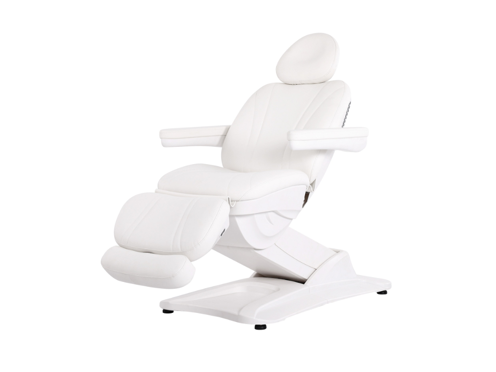 Elektrické kozmetické kreslo GIR so 4 nezávislými motormi, čalúnené bielou PU.