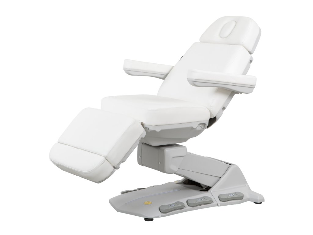 Moderné, elektricky polohovateľné kozmetické kreslo 3 motorové, zaisťujúce komfort pri zákroku nielen pacientom, ale aj osobám, ktoré zákrok vykonávajú.