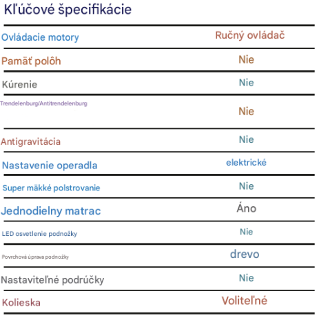 - Funkcia RST pre rýchly a pohodlný prístup na posteľ a vstávanie z nej.
