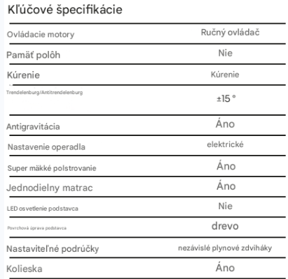 - Rýchlejší stĺpikový motor pre nastavenie výšky a viacero polôh vrátane Trendelenburgu a Antitrendelenburgu.