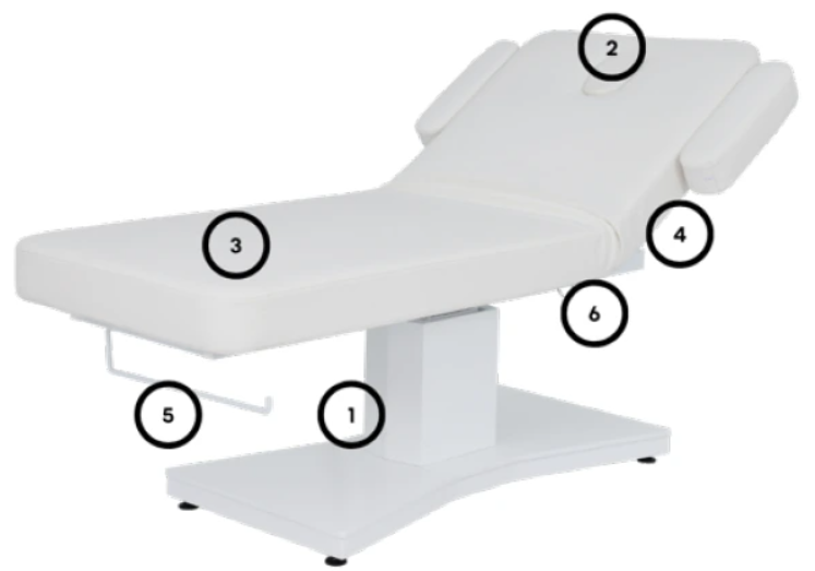 Multifunkčné elektrické lôžko s drevenou základňou. Jeden motor presne nastavuje výšku, zatiaľ čo operadlo sa nastavuje ručne pomocou plynového zdviháka. Súčasťou je krčný vankúš s otvorom na tvár, odnímateľné podrúčky a vstavaný držiak na rolky papiera, ktorý ponúka prvotriednu ergonómiu a funkčnosť pre kúpele a kozmetické centrá.