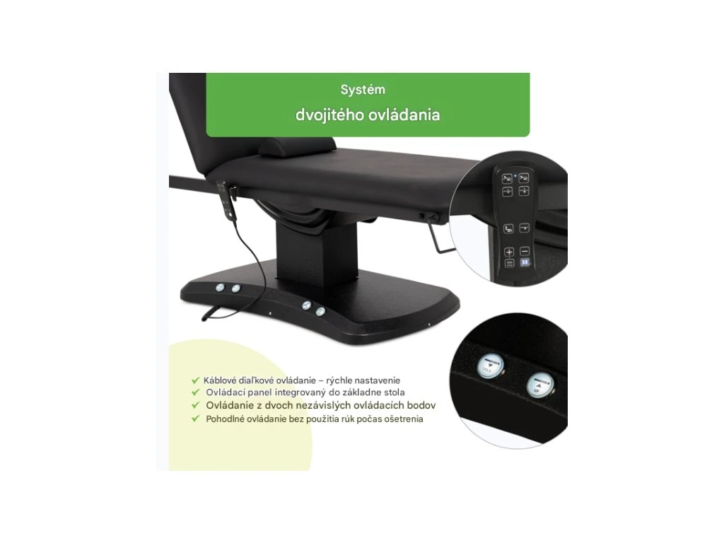 Stôl je možné ovládať pomocou káblového diaľkového ovládania alebo ovládacieho panelu integrovaného do základne stola, čo uľahčuje používanie počas ošetrenia.