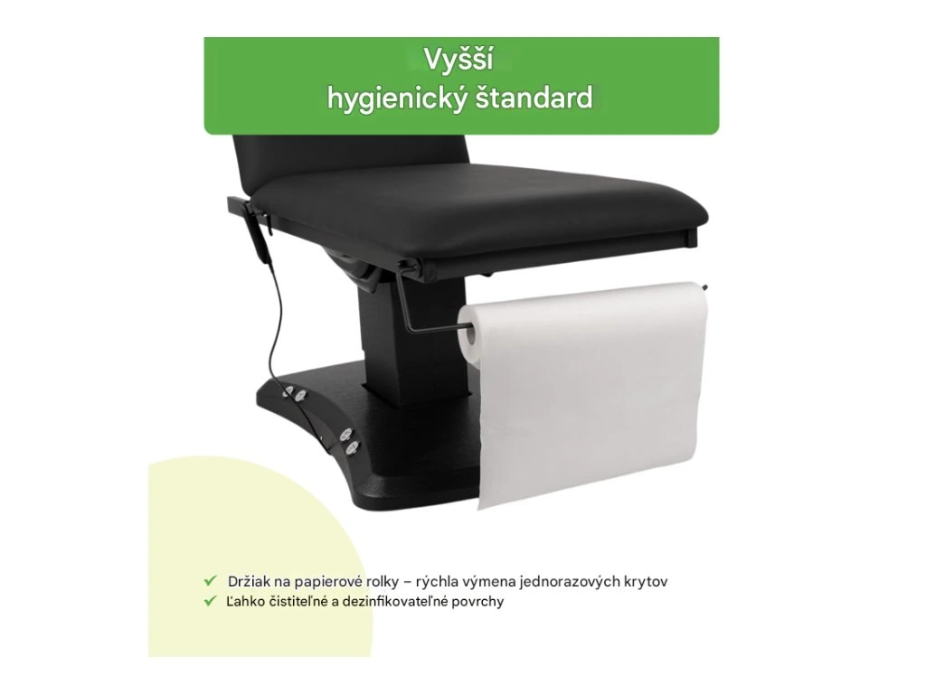 Materiály použité v čalúnení a konštrukčných prvkoch umožňujú efektívnu hygienu v lekárskom prostredí.