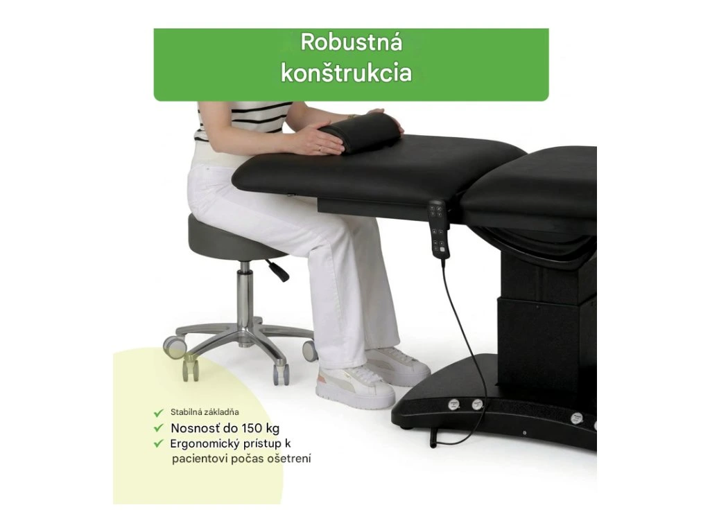 Pevný rám zaisťuje vysokú stabilitu počas vyšetrenia, ošetrenia a manuálnych terapií. Konštrukcia je navrhnutá pre intenzívne použitie v lekárskom a rehabilitačnom prostredí.