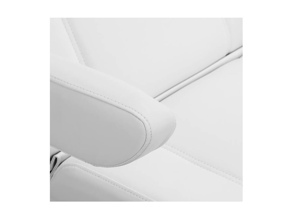 Robustná konštrukcia kresla zaručuje stabilitu a odolnosť počas každodenného používania. Sedadlo je vyplnené penou vhodne zvolenej tvrdosti, ktorá zaručuje pohodlie aj počas dlhodobých ošetrení. Na dotyk príjemné čalúnenie z imitácie kože v odtieňoch bielej farby dodáva kreslu profesionálny vzhľad, pričom je odolné voči vlhkosti a ľahko sa čistí. Odolná základňa zaručuje stabilitu, zatiaľ čo starostlivo tvarované lemy zdôrazňujú moderný charakter nábytku a zvyšujú ergonómiu sedadla.