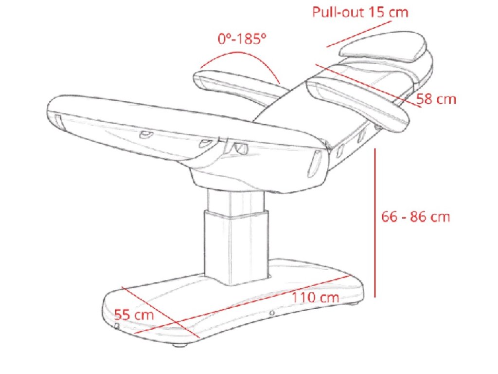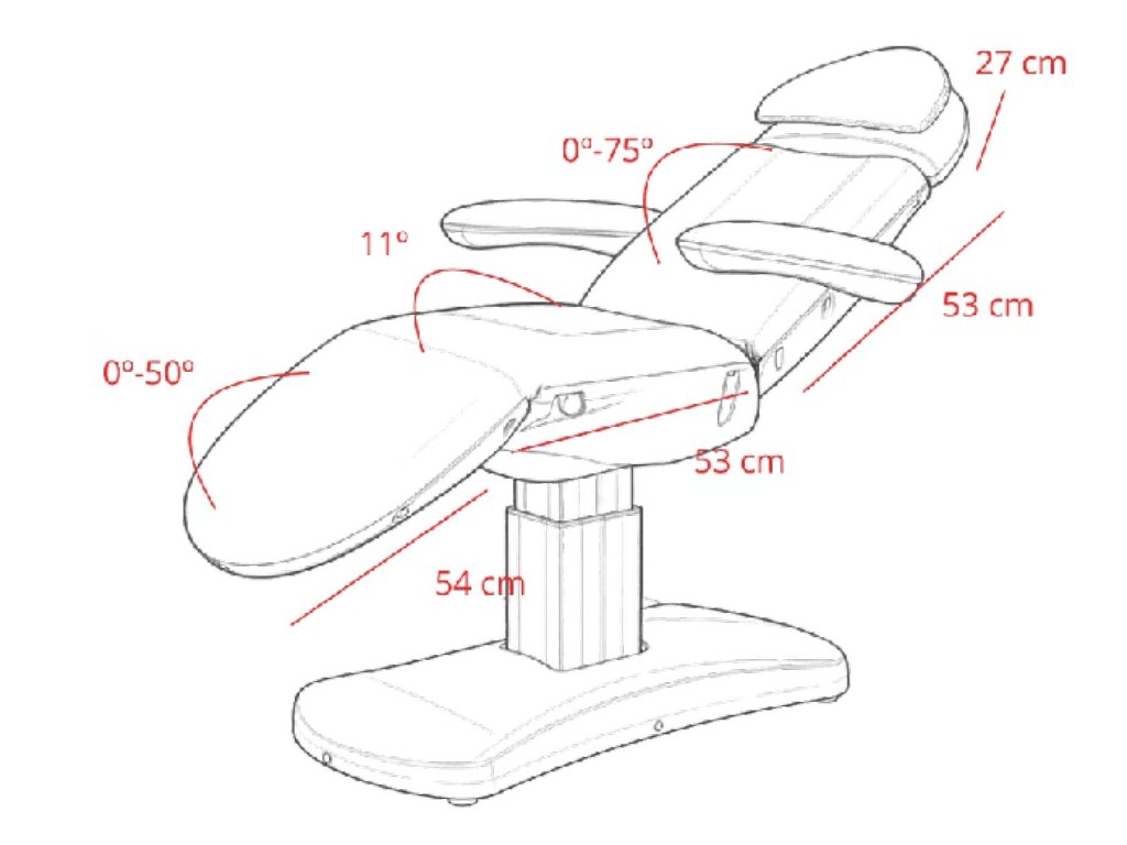 Mimoriadne pohodlné a stabilné kozmetické kreslo s elektrickým pohonom, ktorý vám umožní efektívne nastaviť polohu kresla. 1 motorové