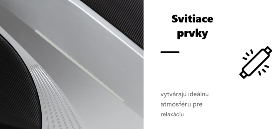 Jemné podsvietenie bočných panelov podčiarkuje moderný design prístroja a dodáva mu na elegancii. Jemná farba svetla podporuje pokoj a relaxáciu a zároveň obohacuje estetiku prostredia. Ide o štýlový dekoratívny akcent, ktorý upúta pozornosť a dodá interiéru jedinečný charakter.