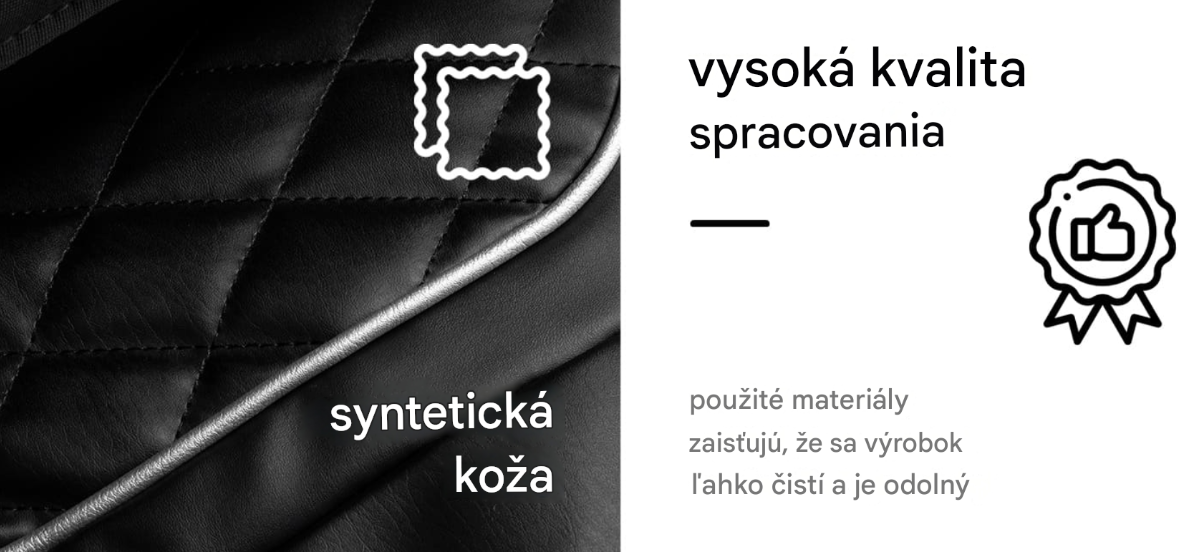 Mäkká imitácia kože v čiernych odtieňoch poskytuje výnimočné pohodlie a ľahké čistenie. Materiál je nielen estetický, ale je tiež odolný voči vlhkosti, čo prispieva k jeho funkčnosti. Vonkajšie prvky vo farbe striebro v kombinácii so štruktúrovaným povrchom v tónoch čiernej dodávajú kreslu moderný, štýlový vzhľad. Vďaka kompaktným tvarom a tlmenému farebnému prevedeniu model harmonicky zapadne do rôznych interiérov. Sakura Prime 108 je vynikajúcou voľbou pre tých, ktorí hľadajú každodennú relaxáciu – najmä po intenzívnom dni alebo náročnom fyzickom výkone.