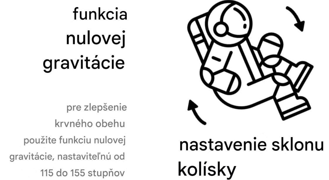 Výberom režimu NULOVÁ GRAVITÁCIA sa sedačka nastaví do polohy inšpirovanej polohou tela astronautov pri štarte rakety - pre minimalizáciu vplyvu gravitácie na telo. V tejto polohe je váha tela rovnomerne rozložená na celú plochu sedadla, čo výrazne znižuje tlak na chrbticu, uvoľňuje svaly a podporuje lepšiu cirkuláciu krvi a lymfy. Táto poloha je považovaná za najpriaznivejšiu pre masáž - poskytuje maximálne uvoľnenie a pohodlie.