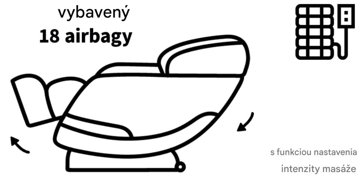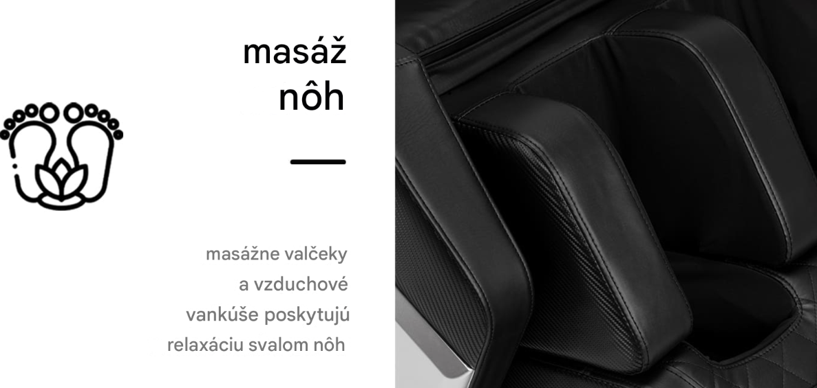 Pokročilý masážny mechanizmus účinne uvoľňuje svaly pôsobením niekoľkých spôsobov. Osem hlavíc precízne masíruje chrbát, stehná a zadok, pričom napodobňuje ručné masážne techniky - miesenie a tlak. Táto procedúra zlepšuje stav celého tela, pomáha zmierniť bolesť a svalové napätie. Po každom sedení je citeľné zníženie svalového napätia a telo sa uvoľní a odpočinie si. Vstavaný masážny prístroj na nohy navyše využíva akupresúru, čím účinne uvoľňuje unavené svaly, odstraňuje pocity ťažoby a podporuje celkovú pohodu.
