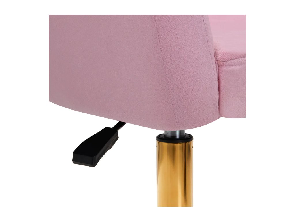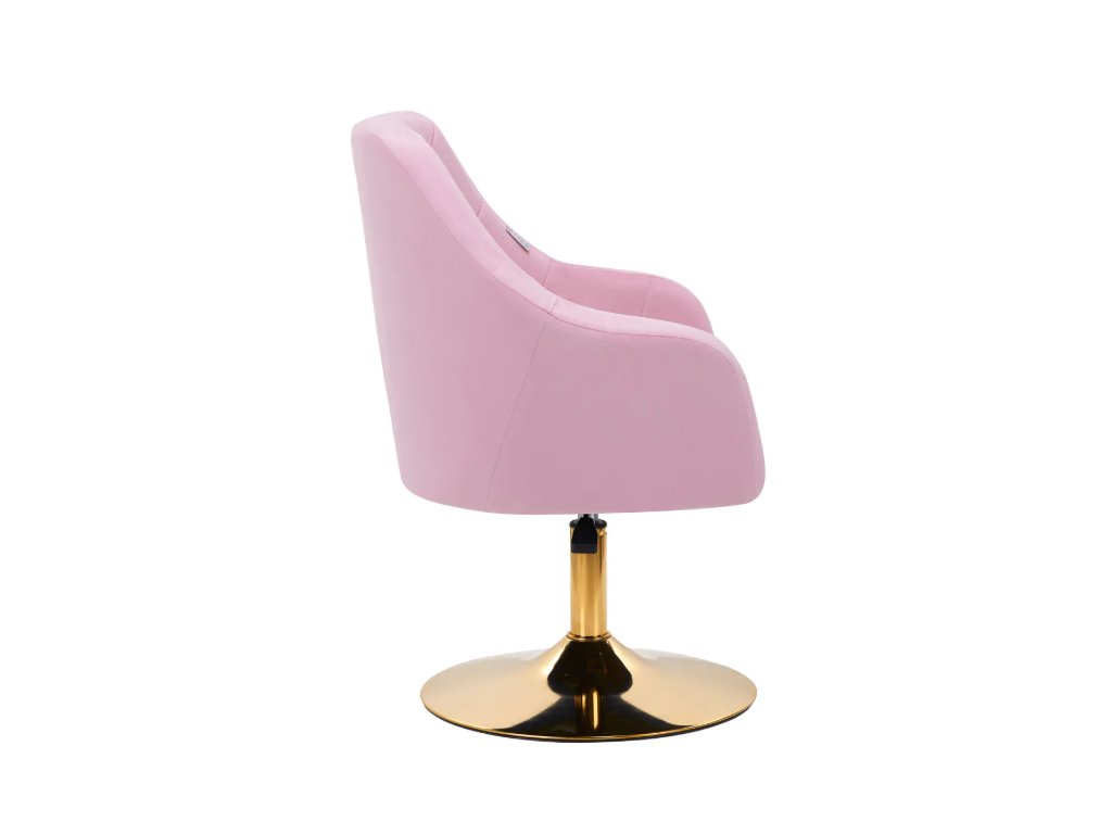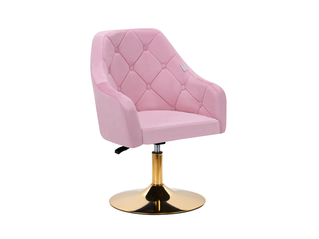 Jeho zaujímavý dizajn dodáva stoličke jedinečný charakter . Mäkké zamatové čalúnenie v odtieňoch ružovej spolu s ozdobným prešívaním z nej robí štýlový doplnok do každého interiéru. Stabilná, okrúhla základňa v odtieňoch zlatej dodáva eleganciu a dokonale dopĺňa zamat. Estetika remeselného spracovania , pohodlne usadené podrúčky, ergonomicky tvarované operadlo a estetické prešívanie zaručujú, že stolička splní očakávania aj tých najnáročnejších používateľov .