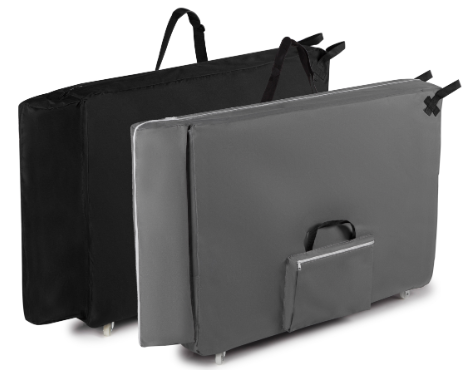 V cene masážnej postele je zahrnutá prepravná taška na kolieskach s držiakom na rolky a malým vreckom na drobnosti. Kolieska si musí zákazník zostaviť podľa montážneho návodu uvedeného na karte produktu. Béžová posteľ sa dodáva so sivou taškou, zatiaľ čo bordová a modrá verzia sa dodávajú s čiernou taškou.