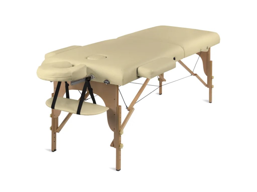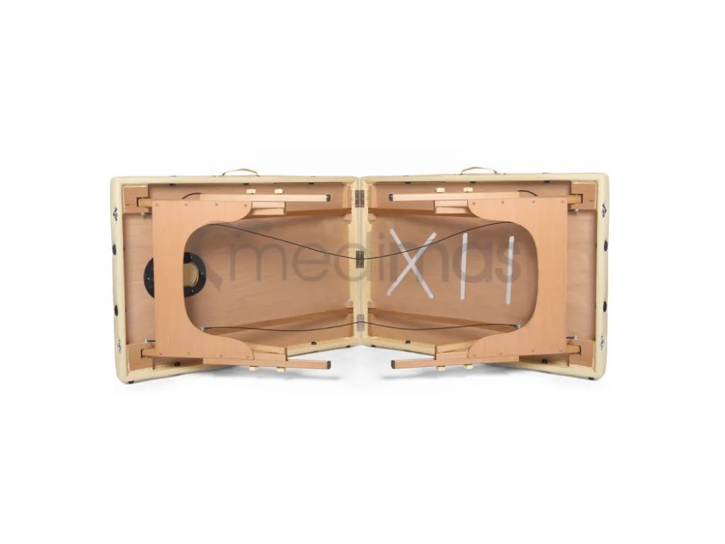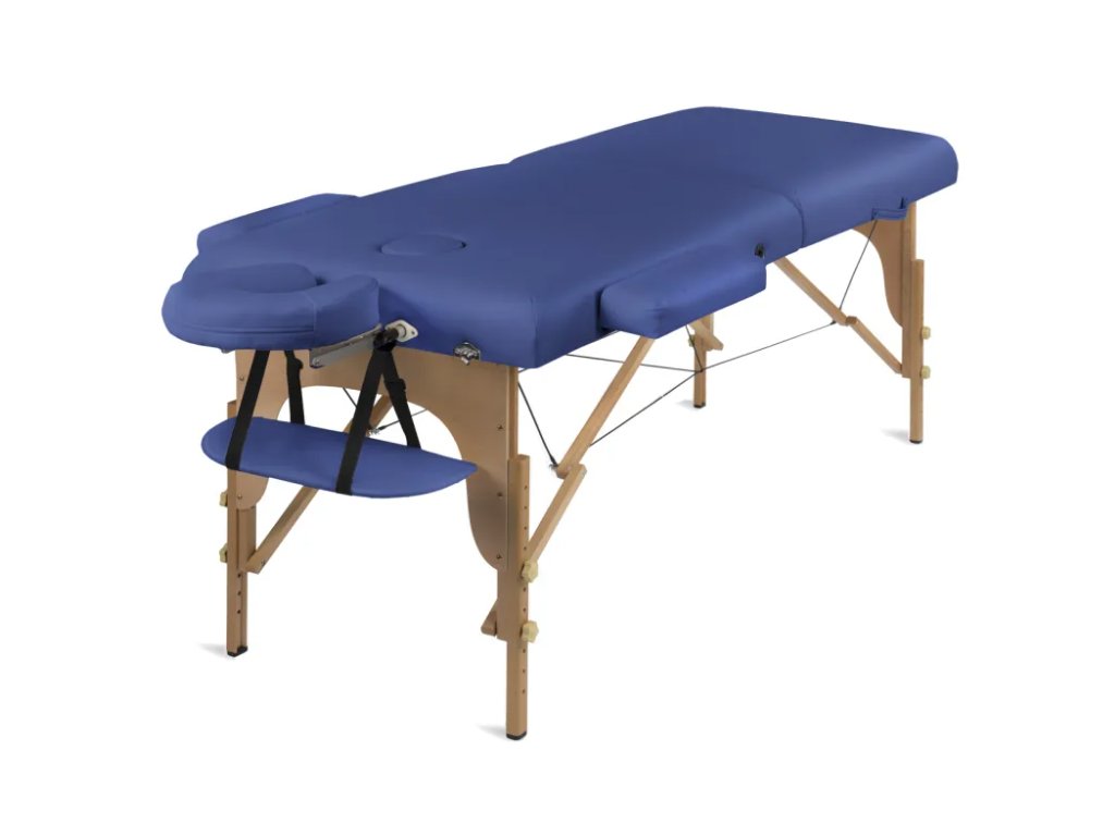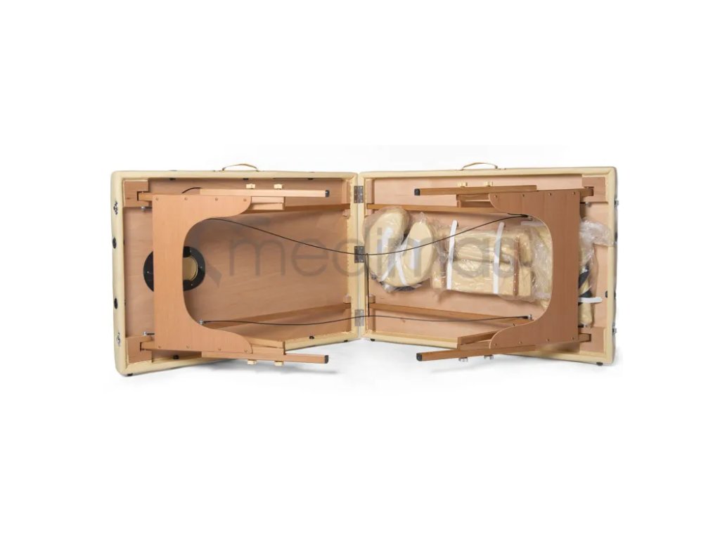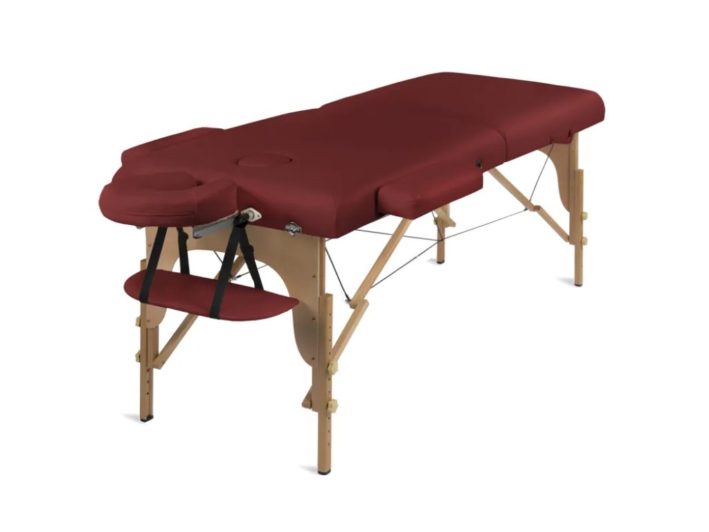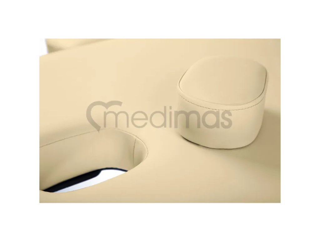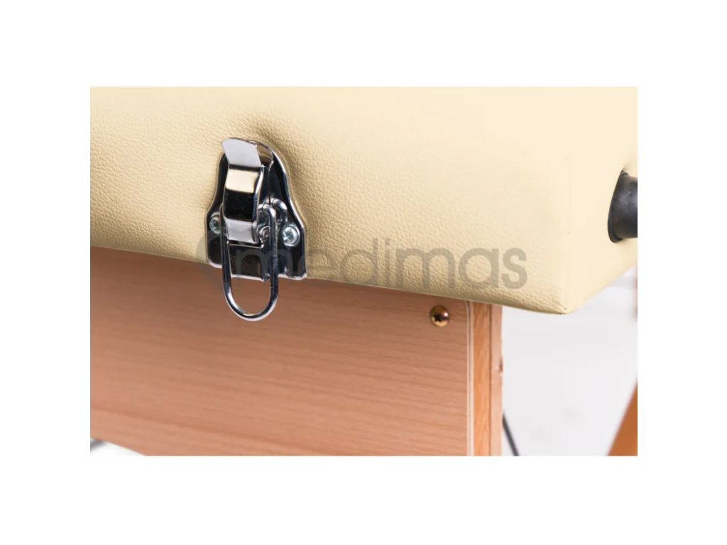 . Stabilný, skladací, dvojdielny drevený masážny stôl vo verzii Deluxe. Kolekcia Deluxe sa vyznačuje ešte väčšou pozornosťou venovanou detailom ako štandardné stoly. Zvýšené pohodlie zabezpečuje zosilnený rám, osem centimetrov peny s vysokou hustotou, mäkké čalúnenie z eko kože a hliníková opierka hlavy so stabilizačnými koľajnicami.