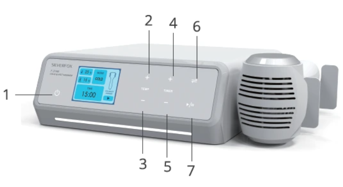 1. Zapojte kladivo do zásuvky. Po správnom pripojení zariadenia k napájaciemu káblu sa „Vypínač napájania“ zobrazí na červeno. Stlačením „Vypínača napájania“ prejdite do prevádzkového režimu a na obrazovke sa zobrazí bielo. Zariadenie sa štandardne prepne do stavu tepelného výkonu. Predvolené nastavenie je stabilné na 35 °C počas 15 minút.