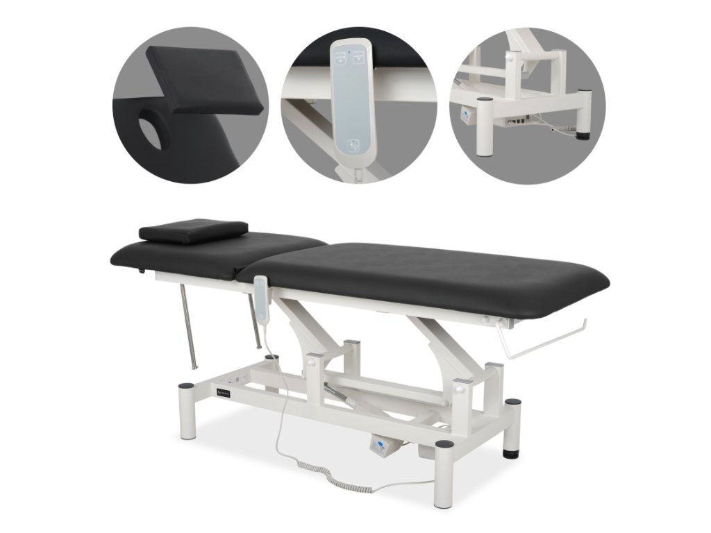 Terapeutický stôl Optima, elektrické nastavenie výšky s ručným ovládačom – Satin Comfort k715 čierny