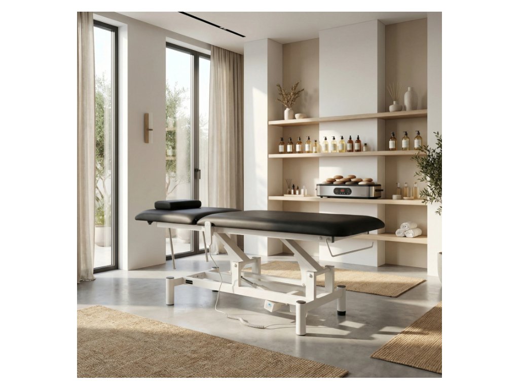 Elektrický pohon pracuje mimoriadne ticho, čím vytvára pokojné a relaxačné prostredie pre liečbu. -