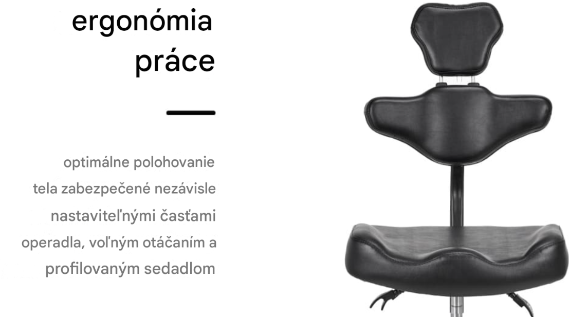 Ergonomická stolička s operadlom pre tetovacích umelcov
